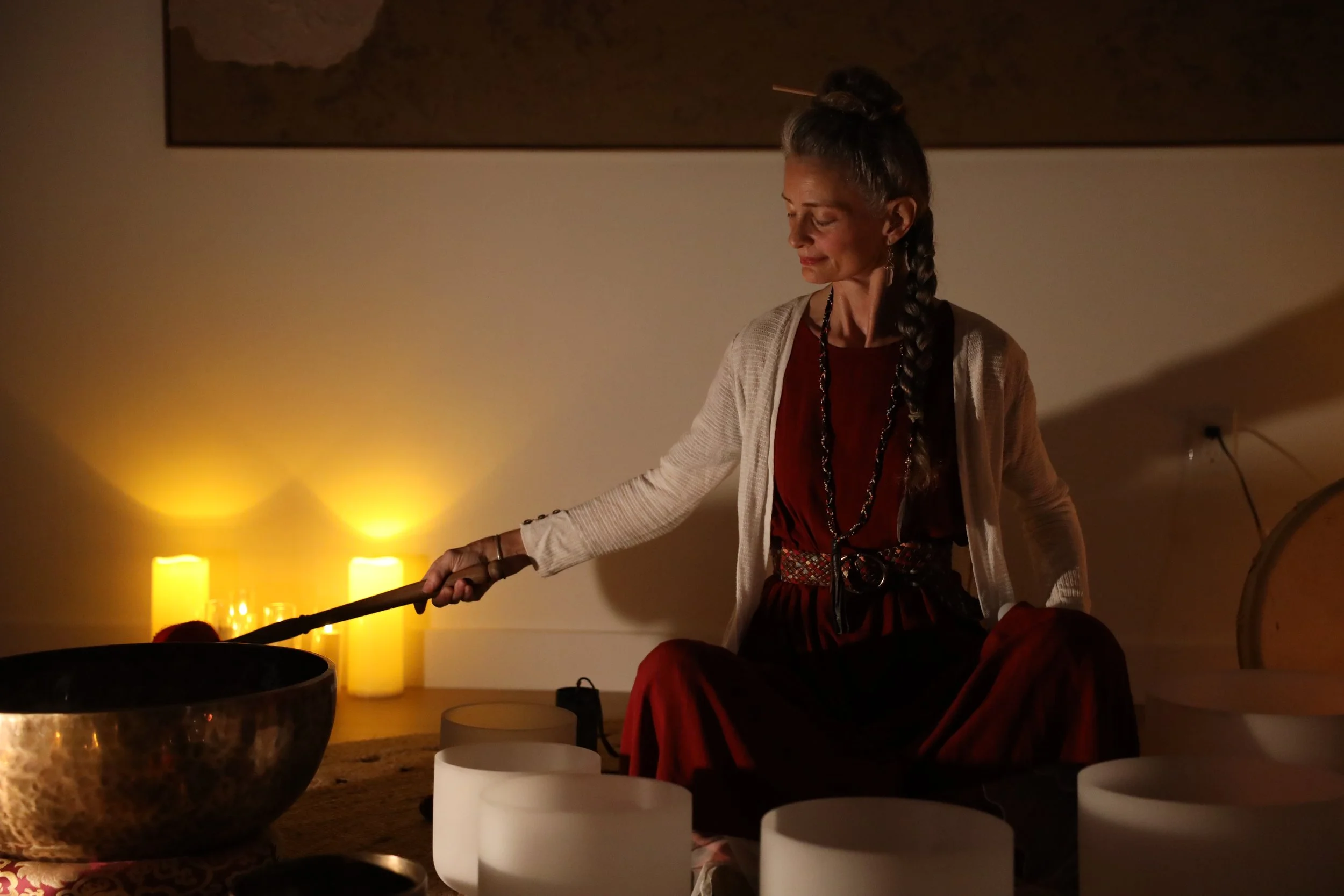 Join Healing Artist Leah Sindermann for an immersive sound healing meditation in our Serenity Yurt. Starting Sunday afternoon, November 23rd, this biweekly four-session series features the resonance of crystal singing bowls, gong, and shamanic drumming.